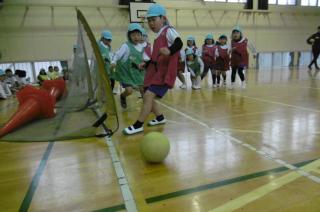 ホーム エスパルス出前教室 エスパルス出前教室 2020年02月26日 今日は年長さんのエスパルスの出前教室がありました。 どの子も張り切って参加し、試合形式になると気合十分。真剣そのものでした。 コーチからは、元気にできたことに二重丸をもらいました。