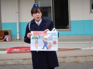 ホーム 交通教室 交通教室 2020年02月25日 年長さんが小学校入学に向けて、交通教室を受けました。 交通指導員さんからDVDを見ながらの指導を受けた後、 実際に道路に出て練習をしました。 また、園庭では傘の差し方も習いました。 傘はいきなり開かず、周囲を見てゆっくりと開くことを教わりました。 周囲の人への気遣いができることも大切ですね。