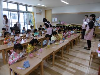 ホーム 歯科教室がありました 歯科教室がありました 2016年07月01日 今日は歯科衛生士さんによる歯科教室がありました。 歯の磨き方を丁寧に教わり、手鏡を見ながら練習しました。 年中・年長さんは歯垢染め出し液を塗って磨き残しをチェックしました。 歯科衛生士さんよりアドバイスです! ・虫歯は歯医者さんに行かなければ治らない病気です。予防が大事です。 ・自分の親指くらいの大きさの歯ブラシを使いましょう。 ・毛先の広がった歯ブラシは汚れが落ちません。新しいものを、、。