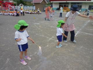 ホーム 花火教室 花火教室 2016年07月05日 今日は花火教室でした。 消防士さんから花火のやり方を教わり、一人ひとり実際にやってみました。 花火が終わったら水の入ったバケツに入れて始末します。 「おうちでやるときはみんながおうちの人に教えてあげてね」と言われました。 今度やるときにはきっと上手にできますね。