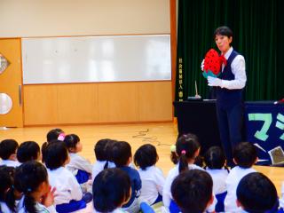 シルクハットの中から何が出てくるかクイズを出しながらマジックが進みます。