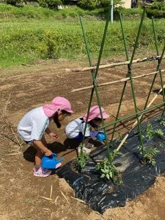 「野菜ができたらいっぱい食べたい」「トマトが大好きだからおいしいトマトができるといいな」とワクワクした様子でお話ししてくれました。これから野菜の栽培を通して色々な発見や感情に触れ、調べたり教えてもらったりていくと思います。野菜とこども達の成長、どちらも楽しみですね。