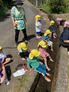 先日、耕運機で畑を起こしてくれた園長先生の姿に感動した年少さん。今日は年中さんも一緒に畑にトマトの苗を植えに行きました。土のひんやり感や柔らかさを感じたり、葉っぱの匂いをかいだりと、五感を使って様々な発見を楽しんでいました。
