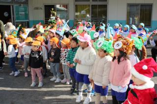 ホーム ご意見・ご要望 2学期最後の行事は… 2学期最後の行事は… 2025年12月17日 2月17日(水)のクリスマス会には、みんなが楽しみにしていたサンタさんが来てくれました。こども達はサンタさんには聞きたいことが沢山!今回は代表のお友達が「トナカイさんの育て方は?」「煙突がないけど、プレゼント持ってきてくれますか?」「本当に空を飛んでいますか?」などと、かわいらしい質問をしてくれました。全部フィンランド語で答えてくれたサンタさん。プレゼントも渡してもらい、嬉しい楽しいクリスマス会になりました。 12月19日(金)は2学期の終業式でした。振り返ると季節も変わり、できるようになったことや頑張った事…たくさんの思い出ができましたね。3学期も元気に過ごせるように健康に過ごすためのお約束をしました。教育部の子は明日から、保育部の子は28日から冬休みになります。にこにこ笑顔で会えることを楽しみにしています。 サンタさんじゃなくて園長先生じゃない? ハンドベルのプレゼント サンタさん登場! もう帰っちゃうの? また来てね~