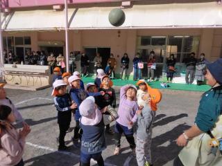 子どもたちの好きな所は友達同士で体をこするところと、最後の、手ぬぐいを高く投げてキャッチする所です。 -