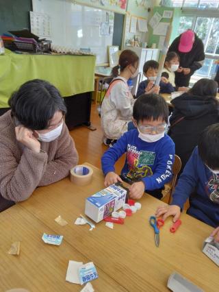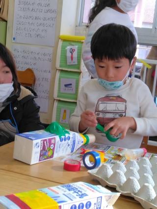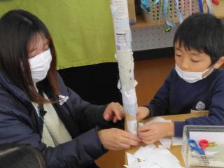 困った時には友達やお家の方・先生に相談しながら作る姿も見られました。 -