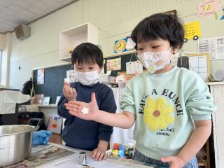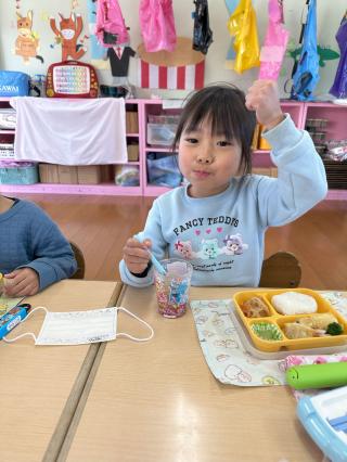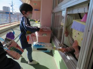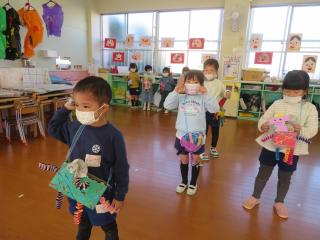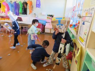 最後は福の神様からもらった豆を、もう悪い鬼が来ないようにとみんなが元気に過ごせるように願いを込めてみんなで投げました。