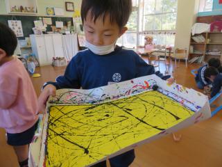 みんなが大好きなビー玉転がしで鬼のパンツの模様にしました。
