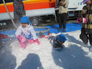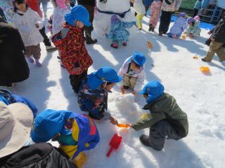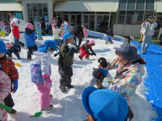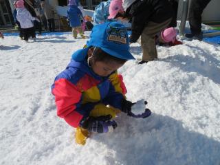 雪団子は手でぎゅっぎゅと丸めて、丸い形になるように一生懸命作っていたね!