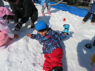 雪の上に寝てみたよ!ふわふわで気持ちいい~