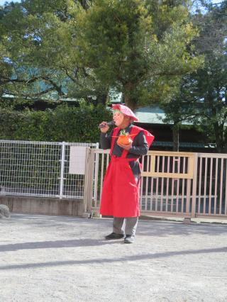 豆まきの後は福の神様も来てくれてみんなにお話をしてくれました。