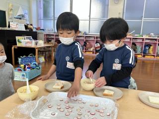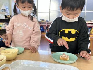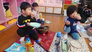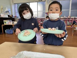 • 「おいしい~」「もっとたべたい~」と食べるのが早い子どもたちでした。