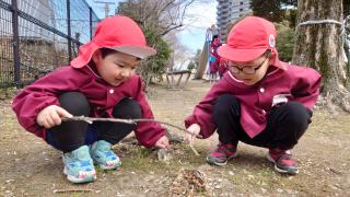 • 公園の横を通る電車を待っている間、木の枝で太鼓ごっこが
