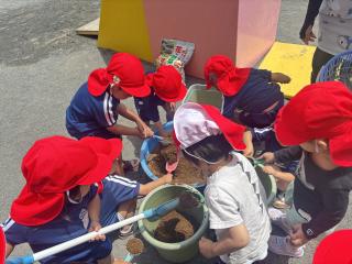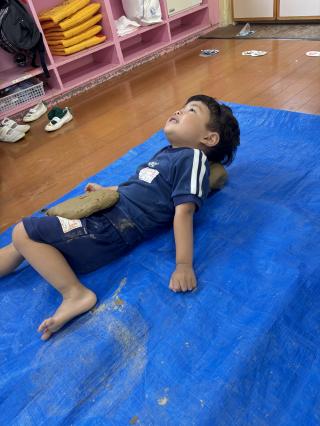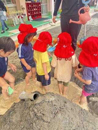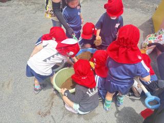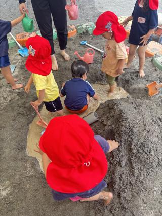 泥んこ遊びをしたよ。大きなプールを作ったね♪