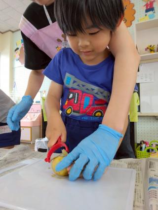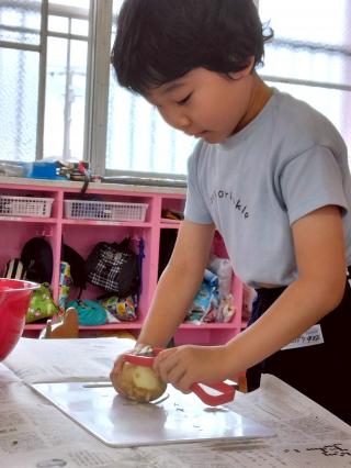 • 先生がじゃがいもを潰しているところを順番に見ていました。