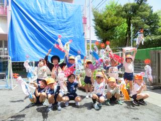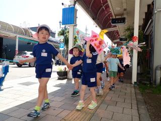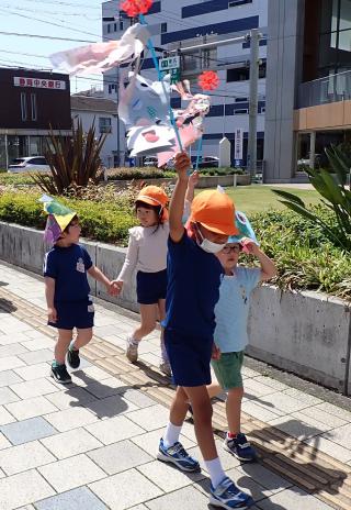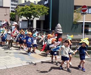 自分で作ったこいのぼりを持って商店街へこいのぼり行進をしました。