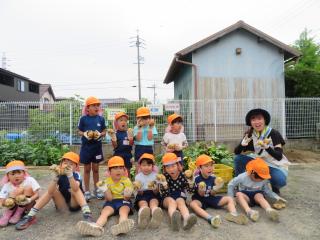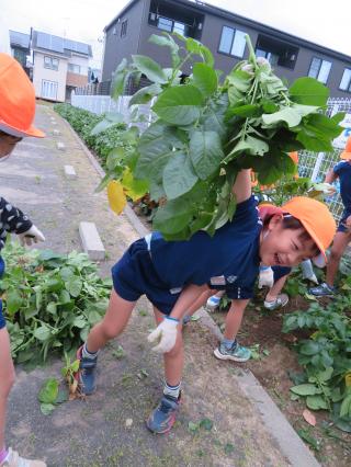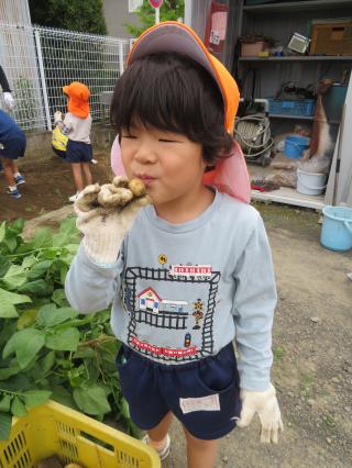 顔に土がついても気にならないくらいみんなが夢中になって収穫を楽しんでいました。