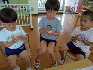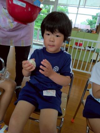 手のひらで潰して平らにしたり、おにぎりのようにぎゅっぎゅと握ったりと楽しんでいました。