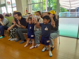 つき組、たけ組のお兄さんお姉さんの真似をしながら上手に踊れたね。 -