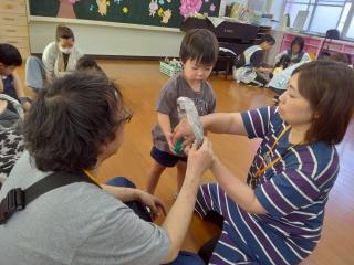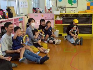 『前に出し』『おむねをはりましょ』『いっぱいげんき』を歌いました。元気よく出来たね♪ -