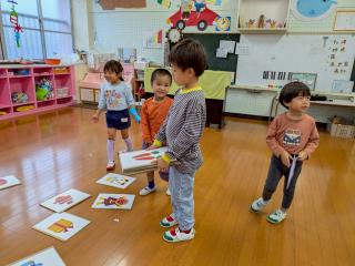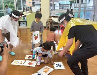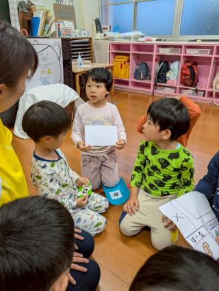 それぞれのグループが仲良しになった証にある文字をもらってきました。みんなで話し合いです。どうしたら宝箱は開くのかな?