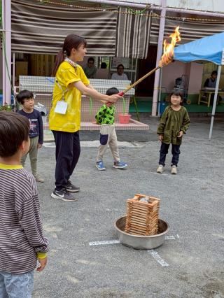 最後はみんなと先生たちと火の神様とキャンプだホイ♪を歌って踊りました。みんなの心がひとつになりました。これからも火を大切にしていこうね!