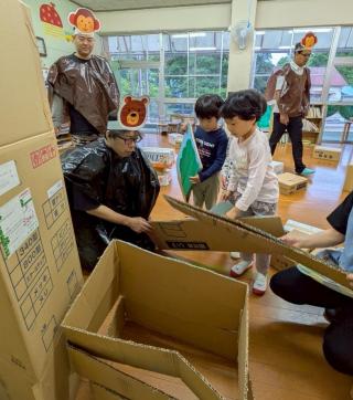 みんなで見つけた大発見を合わせてみよう!全部合わせると大きな木になったね★最後はくまさんたちとも協力したね.