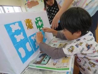 ちぎり絵をしたり、紋切りをしたり、工夫していました。