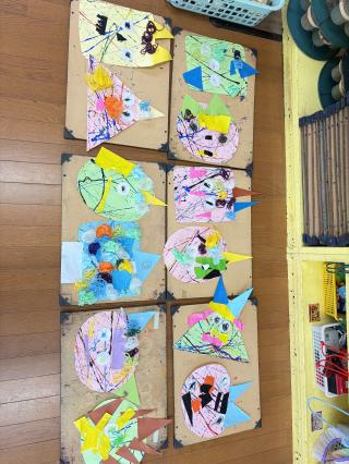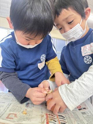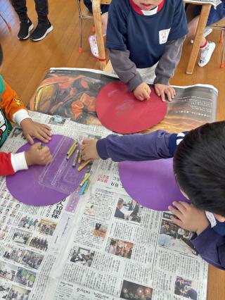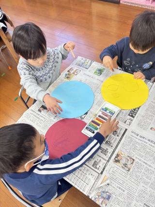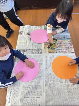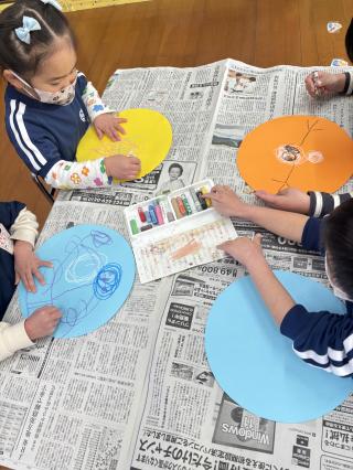 ビー玉転がしで素敵に仕上げた画用紙が、鬼のお面に大変身‼ -