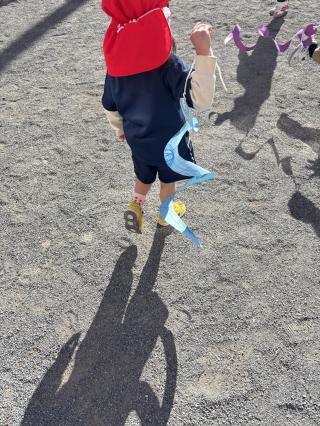 走って思い切りクルクル回したり、立ち止まって風が吹くの待っていたり。