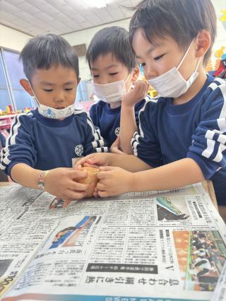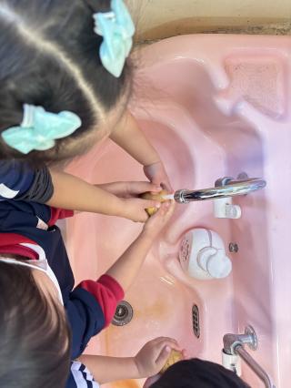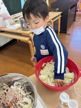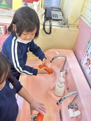 「美味しいー‼」「おかわり‼」と、夢中になって食べていました。お鍋いっぱいにカレーは空っぽに。楽しく