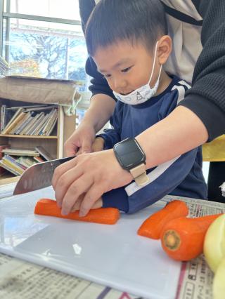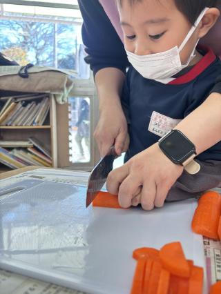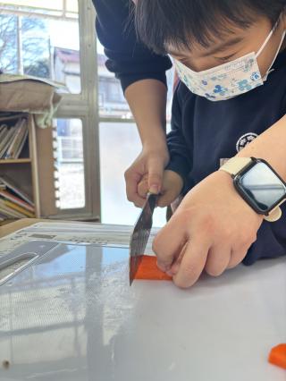 包丁を初めて使う子や、「家でお手伝いした時使った‼」など、緊張しながらも楽しく切れました♬ -