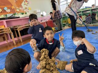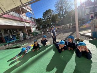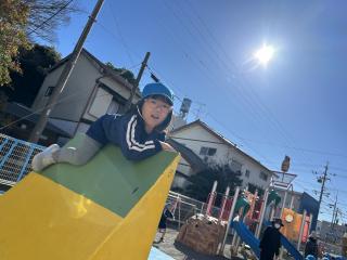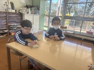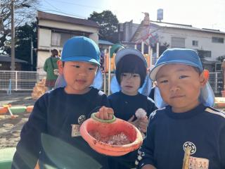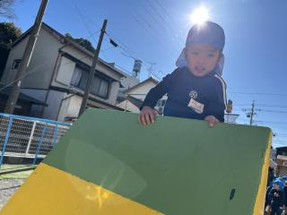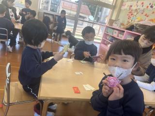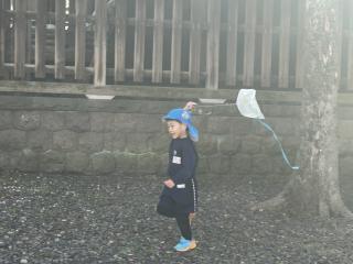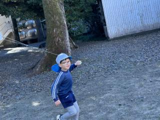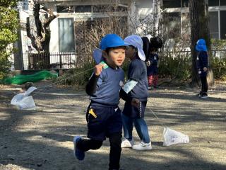 冬休みが明けてすぐ、手作りの凧を作りました。走るとグングンのびて元気に空を飛ぶ凧に子どもたちは大喜び♪