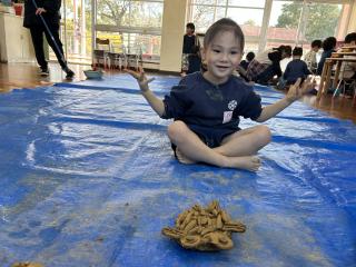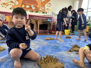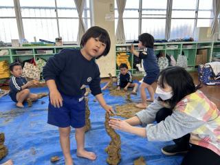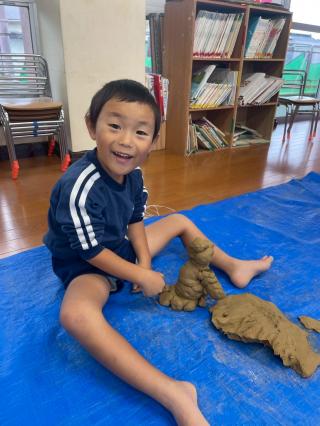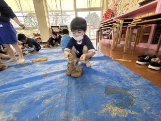 「みて、みて!ねんどをたくさんつみあげたよ!」 -