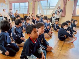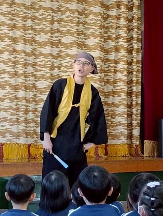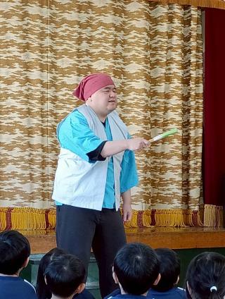 お坊さんたちによる劇を見ました。素敵な声色に子どもたちも魅了され劇の世界に入り込んでいました。 -