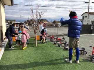 今日は園の豆まきです。「鬼が来るんだよ」と子ども達もソワソワ・・・。