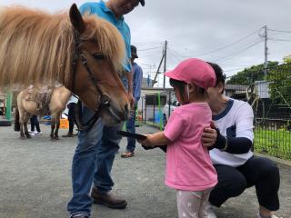 ドゥーラの森にポニーが来てくれました。近くで見るポニーに、少しドキドキ。保育士と一緒に餌をあげたり、乗馬ができる子は、乗馬にもチャレンジしました。みんな、近くで見るポニーをとても喜んでいました。