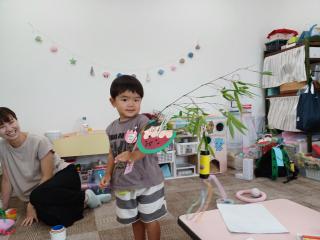 今日の活動は、「七夕飾り」をみんなで作って遊びました