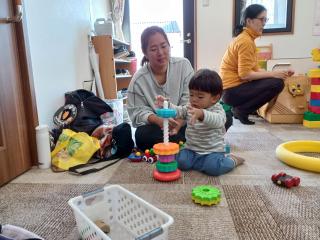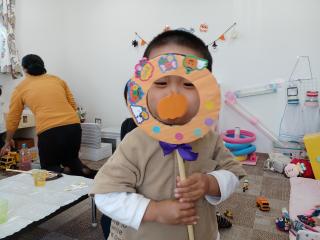 途中、すみれ組のサークルのお友達がハロウィンのコスチュームで遊びに来てくれたりと