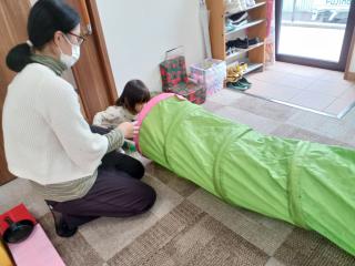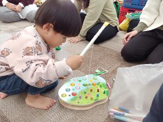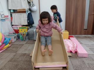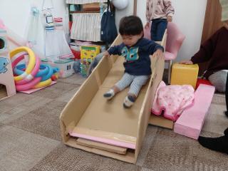11月11日 室内遊び 今日のサークル活動は、「室内遊び」で過ごしました 段ボールの滑り台が登場して、みんなとっても大喜び! 繰り返し何度も滑ってとっても楽しそうに遊んでいました♪ 他にも、魚釣り遊びや、スロープのミニカー遊び、 トンネル、お絵描き、などなどあっという間の1時間でした これたのしいな♪ 何度も繰り返して滑ってくれました すべりだい、だいすき♡ お魚釣りも楽しかったね♪ つぎはどれを釣ろうかな? きょうはどうしましたか? わ~い♪ ぼくが一番乗りだよ お~い!だれかいますか~?