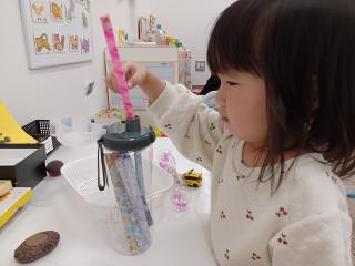 ペーパーの芯やストロー、ガチャガチャの容器などいろんな廃材を使ったスタンプを