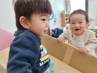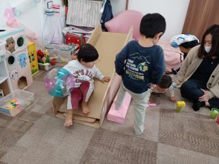 2月17日 岩本山公園散策 (雨天*室内遊び) 今日は、岩本山公園散策の予定でしたが天候が不安定の為、室内遊びで過ごしました おままごとや、ブロック、ミニカー、ボールなどなど思い思いに自分の好きな遊びを楽しむ姿がありました おかあさんたちに美味しいお料理を作って届けてくれたり、ブロックでおおきなトンネルを作ったり ボールをおもいっきり投げてみたりと笑顔いっぱい楽しそうでした これ、いい音がするね♪ これで、大きなトンネルを作ろう これはなんだ? どこに入るのかな??? とってもいい笑顔だね♡ 今日もボールやすべり台など 元気いっぱい遊んだね やったー!ぼくのお誕生日の番がきたよ♪