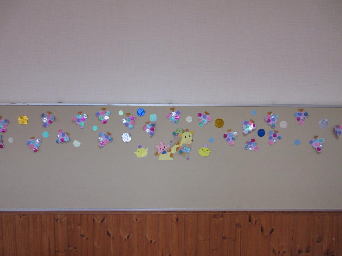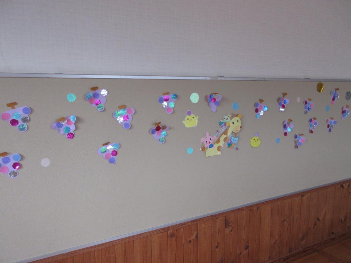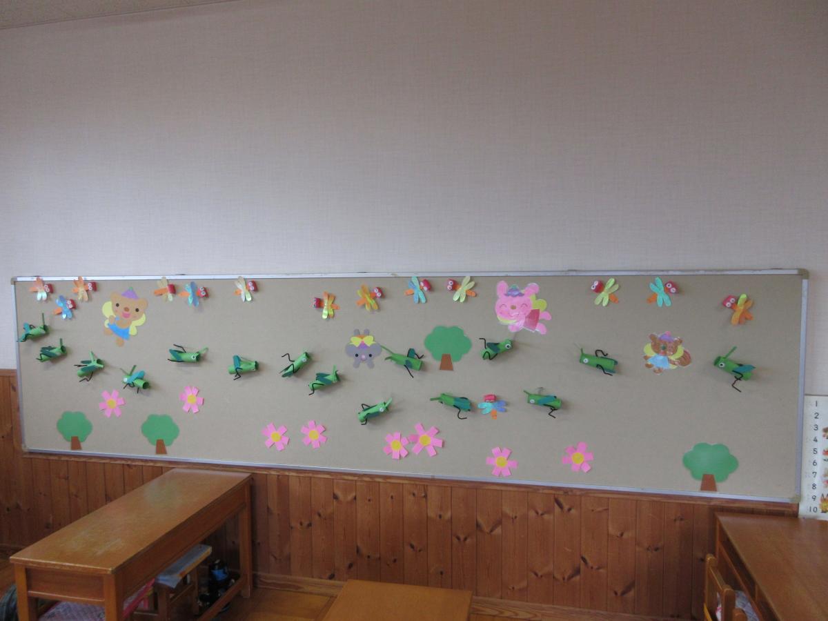 秋の部屋飾り~年長・年少・満三歳~ ゆり・ばらさん! 男の子はバッタ、女の子はとんぼを作りました! 幼稚園にも時々とんぼが飛んできたり、バッタが草の近くにいる光景を見かけます。 秋が近づいてきているようです☆ てんし・ほし・すみれさん! きらきらしているおしゃれなぶどうを作りました! みんなのぶどうが集まると、お部屋も明るくなりました!