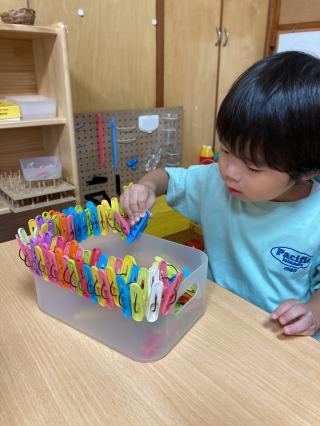 朝晩は肌寒さを感じたり、日中は心地よい風が吹いたりと秋を感じる時もあります。子どもたちも季節の変化を感じているようです。戸外遊びではトンボやバッタなど秋の虫を見つけたり、朝は涼しかったよね!などと気温の変化について話をしたりしています。