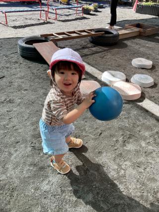 月日が経つのは早いもので今年も残りあとわずかになりました。寒さが日に日に増し、冷え込むようになってきましたが子どもたちは外遊びが大好きです。タイヤや木の板を組み合わせた遊具の上でバランスをとりながら遊んだり、ボールをカゴに投げ入れたり、花壇の周りの小さな階段を歩いたりして、毎日元気いっぱいに遊んでいます。最近では、自分でおむつやズボン、靴下などの着脱をしたり身の回りのことを自分でやろうとしたりすることも増えました。その時の真剣な表情や、上手にできた時の満面の笑顔から、日々成長していることが感じられます。
