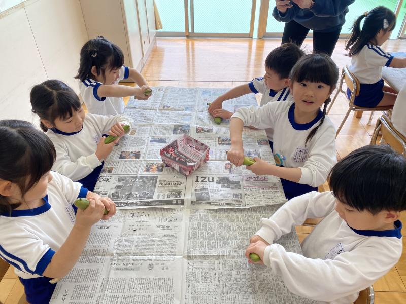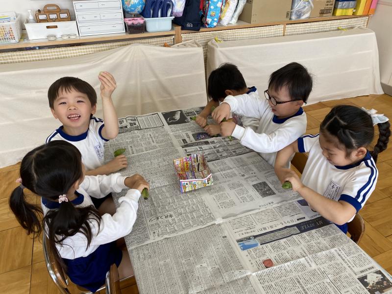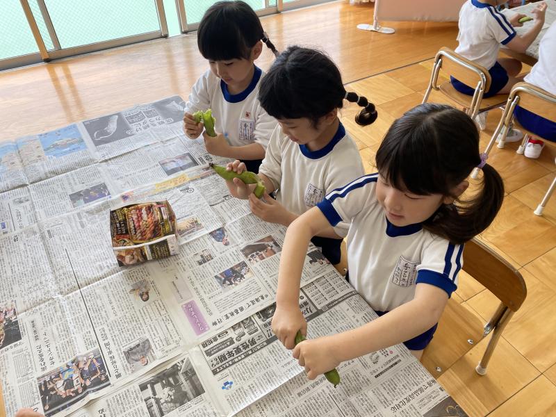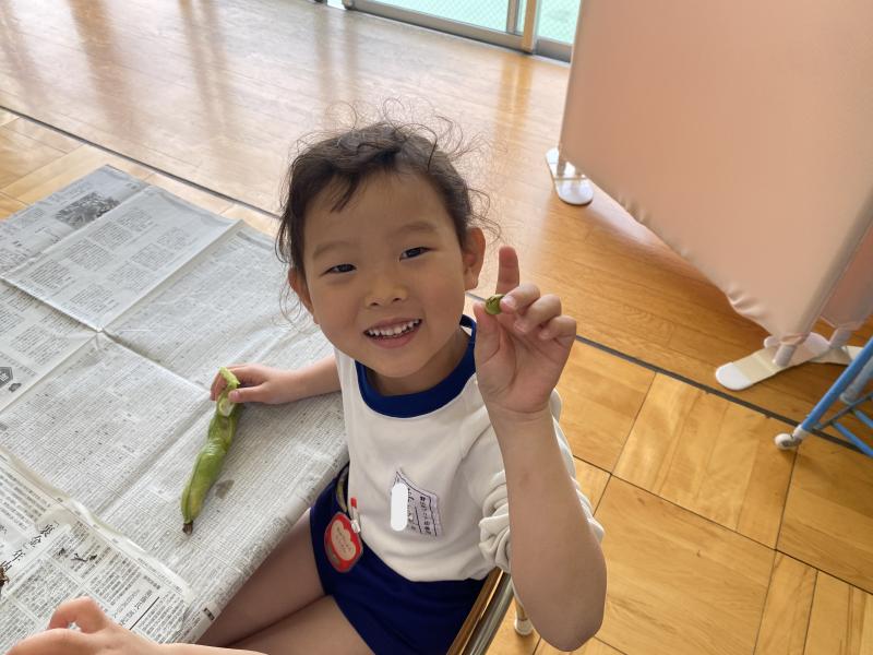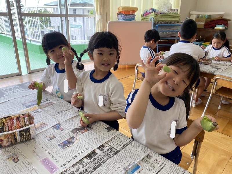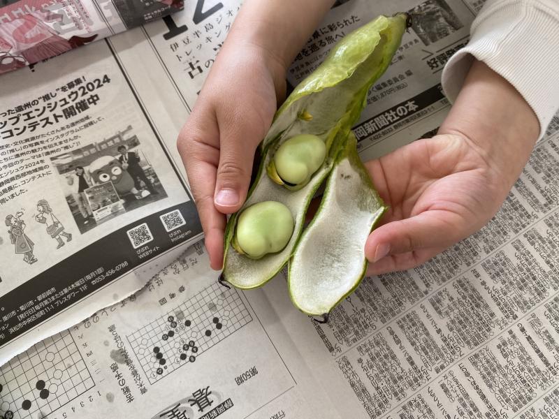 さらに豆出しには手の力をつかうので、豆出しをするとお箸が上手に持つことができることを教えていただきました。ご家庭でも、そら豆や他の豆の豆出しをお子様と一緒に楽しんでみてください♪