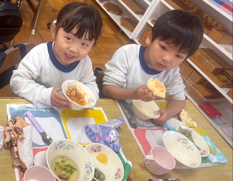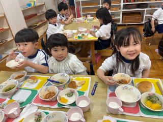 これからもマリア幼稚園の美味しい給食を沢山食べて、元気で強い心と身体をつくっていきましょう!