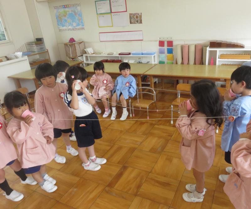 初めて糸電話に触れる子が多く、友達の声が聞こえると嬉しそうに何度も体験している姿がありました。