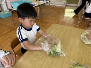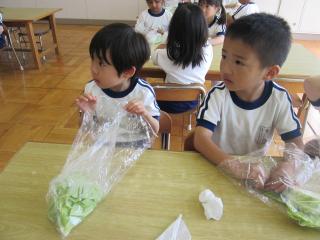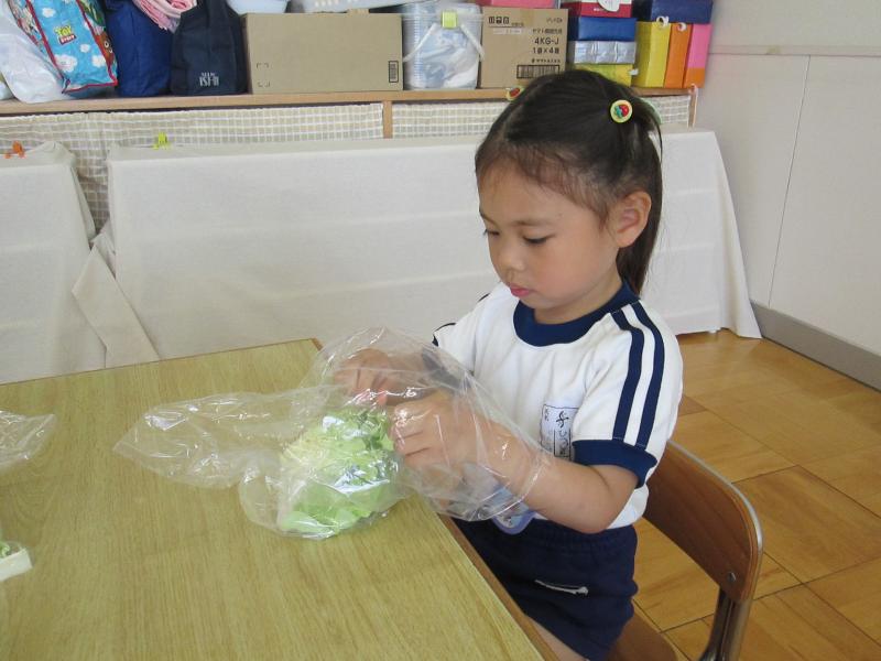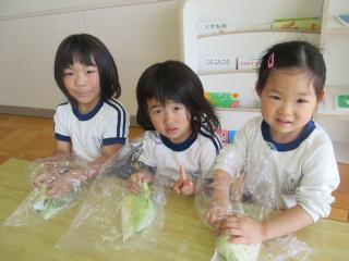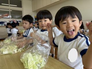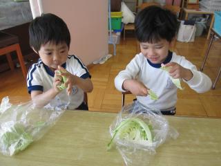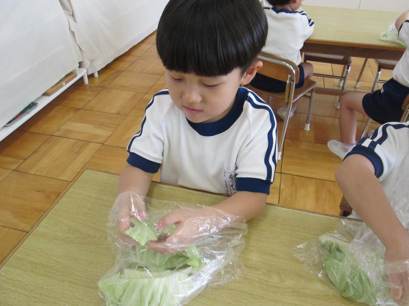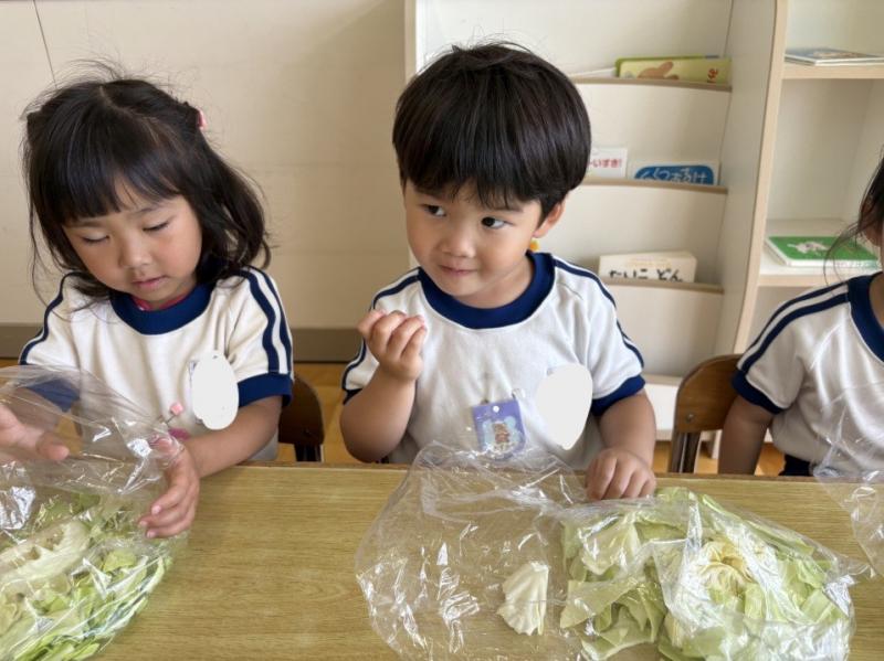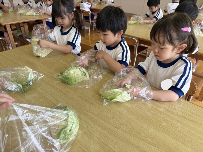 ご家庭でもキャベツをちぎるお手伝いができるといいですね♪