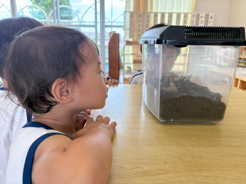 ぞう組にダンゴムシが好きな子がいるので、クラスで飼ってみることにしました。
